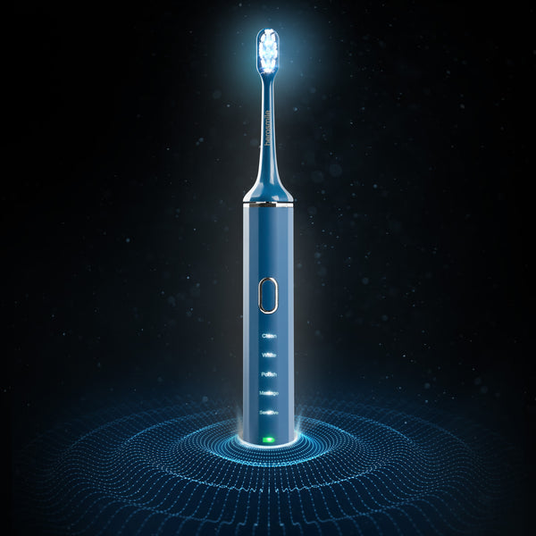 Der Tesla der elektrischen Schallzahnbürste! Mit der weltweit fortschrittlichsten Zahnbürstentechnologie können wir jetzt Deine Zähne in nur 2 Minuten pro Tag gründlich reinigen, aufhellen und für weisse Zähne sorgen. Hervorragende Plaqueentfernung dank Schallvibration, besonders zahnfleischschonend. Der zusätzliche photobiologische Effekt reduziert signifikant den bakteriellen Biofilm auf der Zahnoberfläche und im Borstenfeld der Schallzahnbürste selbst. Dazu kommt bei diesem Zahnaufhellungsprodukt noch eine angenehme mittlere Härte der DuPont-Borsten.
